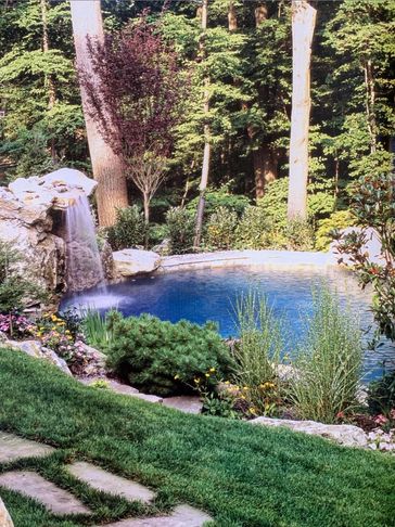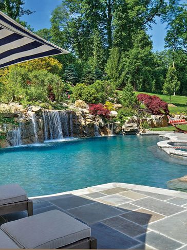 "Designed with fun in mind for today, but long-term beauty for the future, the pools cape behind a mediterranean-style home in Ridgewood,NJ, will have no trouble maturing gracefully along with its owners."